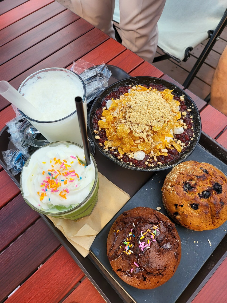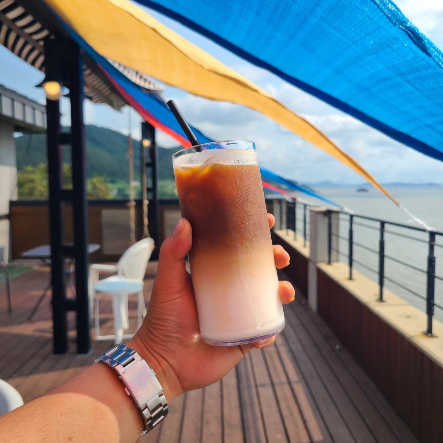 선쉐이드가 펼쳐져 있어 그늘도 형성되어 있고 바람이 정말 많이 불어서 더운 기운 하나없이 시원한 음료도 같이 마셔 보고 빙수를 먹다보니 덥진 않았습니다 ㅎㅎ