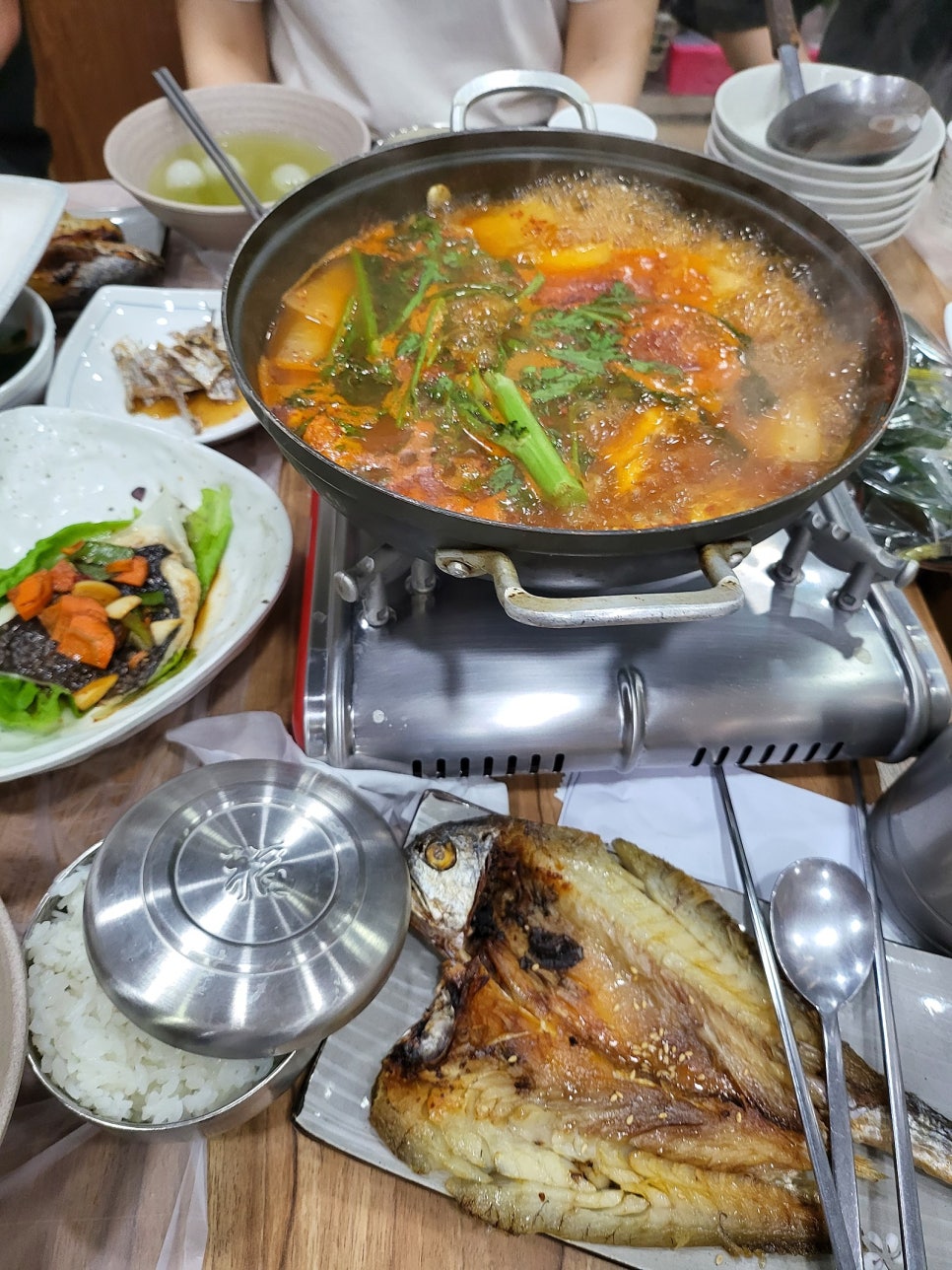여하튼 이렇게 영광 1박2일 여행에서 보리굴비는 반드시 드셔야 하는 것 중에 하나인데 이번에 가게된 갈매기 식당이 또 엄청 유명한 곳이고 웨이팅도 있는 곳으로 잘알려져 있는데 한상 22.000원이라는 가격에 가성비가 너무 좋을 정도로 양도 푸짐하고 반찬도 다양해서 완전 반했습니다.