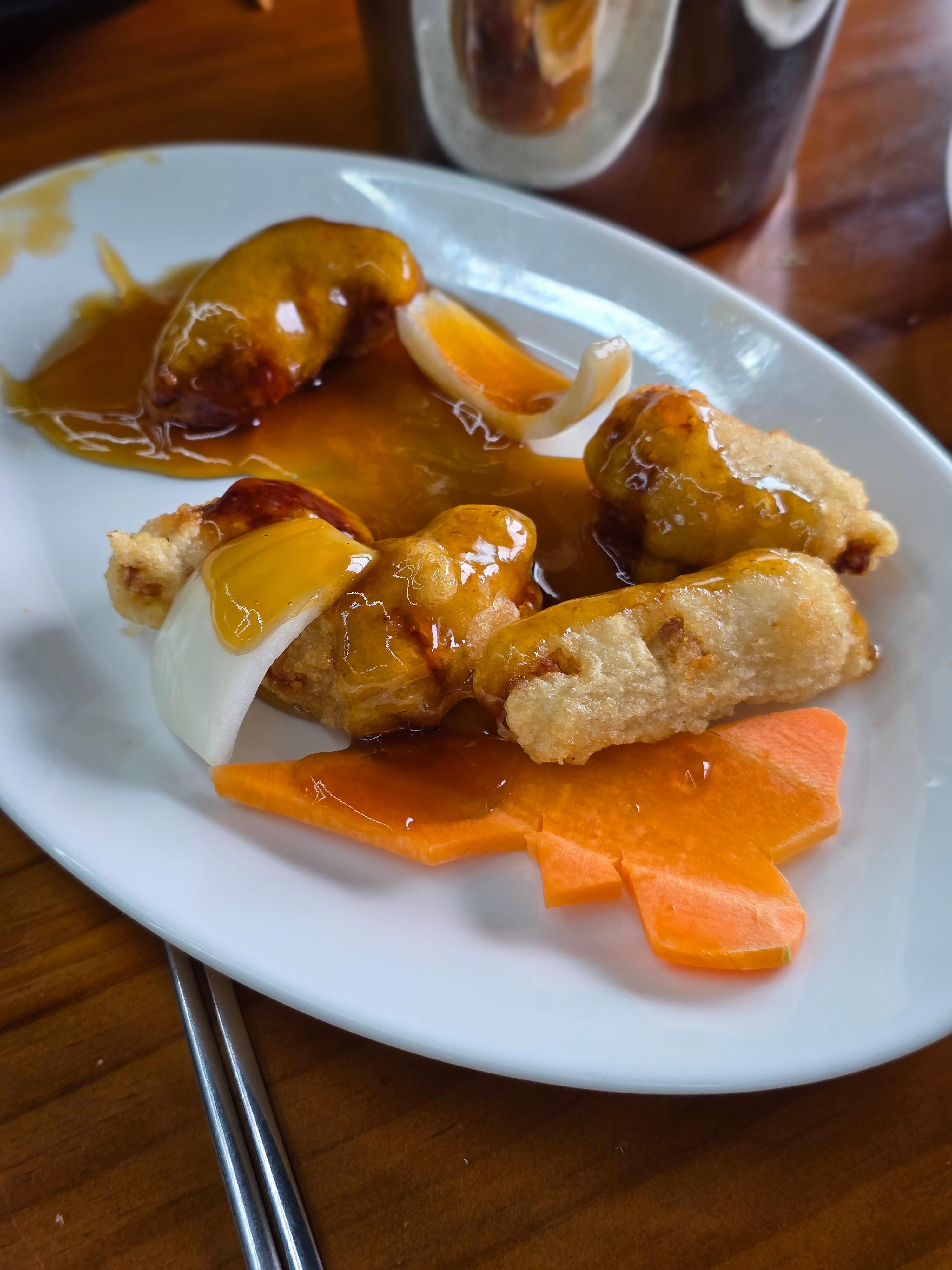 이건 매콤 탕수육이라는 건데 저희는 미니로 주문했는데 양이 이거 너무 심할 정도로 적어서 좀 실망했던.