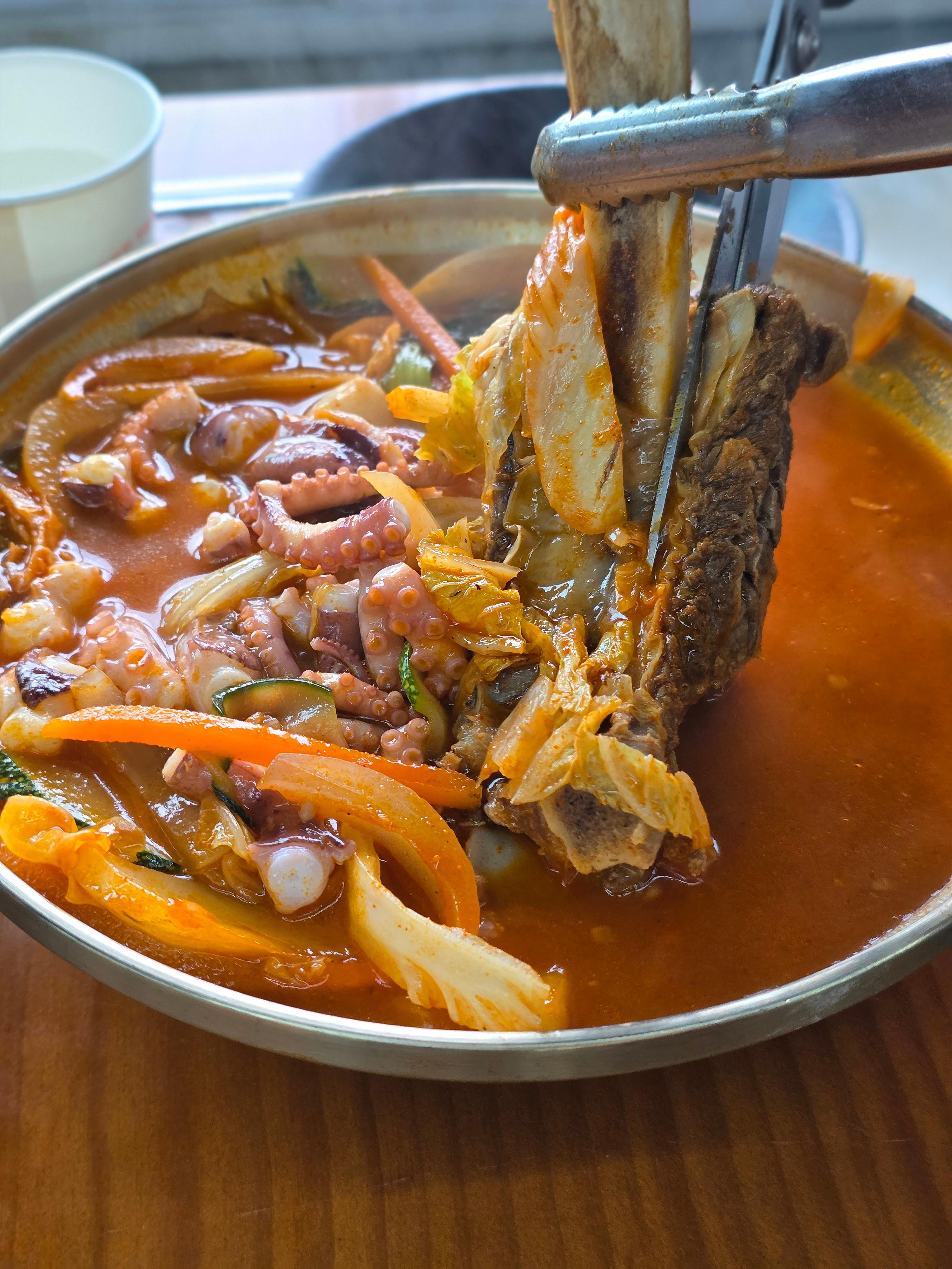 그렇게 1시간 가까이 기다려서 들어가게된 인천 강화도 맛집 여기는 육갈탕이라는 음식과 갈낙짬뽕이 시그니처 메뉴였는데 일단 굉장히 양이 푸짐하고 뼈가 통째로 들어가 있어 뜯어먹는 재미까지 주는데 비쥬얼이 대박이라 아마도 비쥬얼에 흠뻑 빠져서 찾아가시는 분들이 많을 것 같습니다!