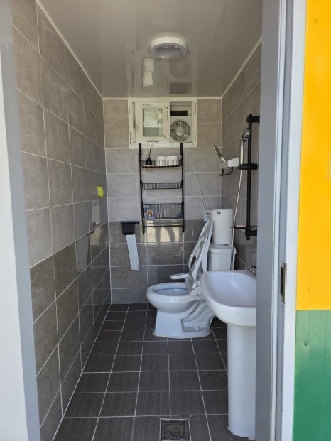 화장실은 예약을 하고 체크인을 하면 문자로 비밀번호를 알려주시는데 내부로 들어서면 굉장히 깨끗하게 관리가 되어 있는 화장실 그리고 샤워실이 잘 만들어져 있어 정말 좋았습니다.